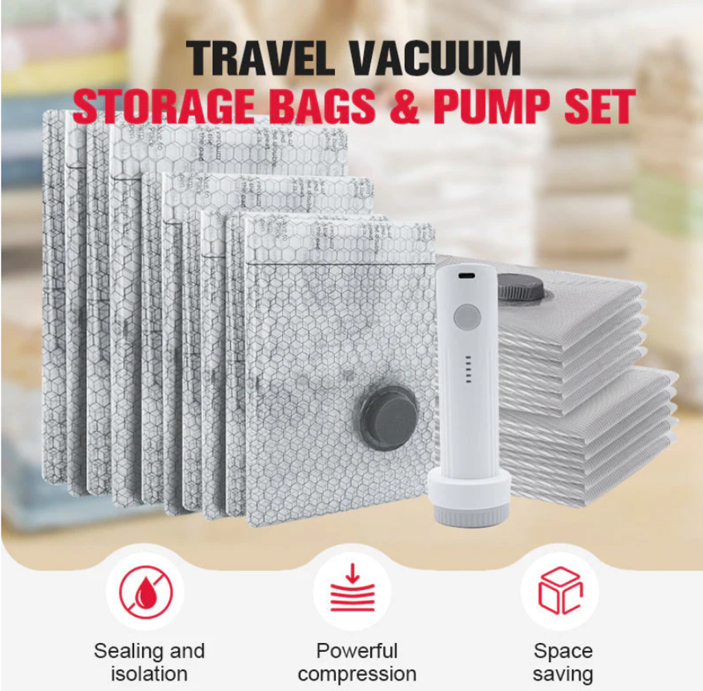 LAST DAY PROMOTION - 50%OFF 🔥 Travel Vacuum Storage Bags & Portable Pump Set